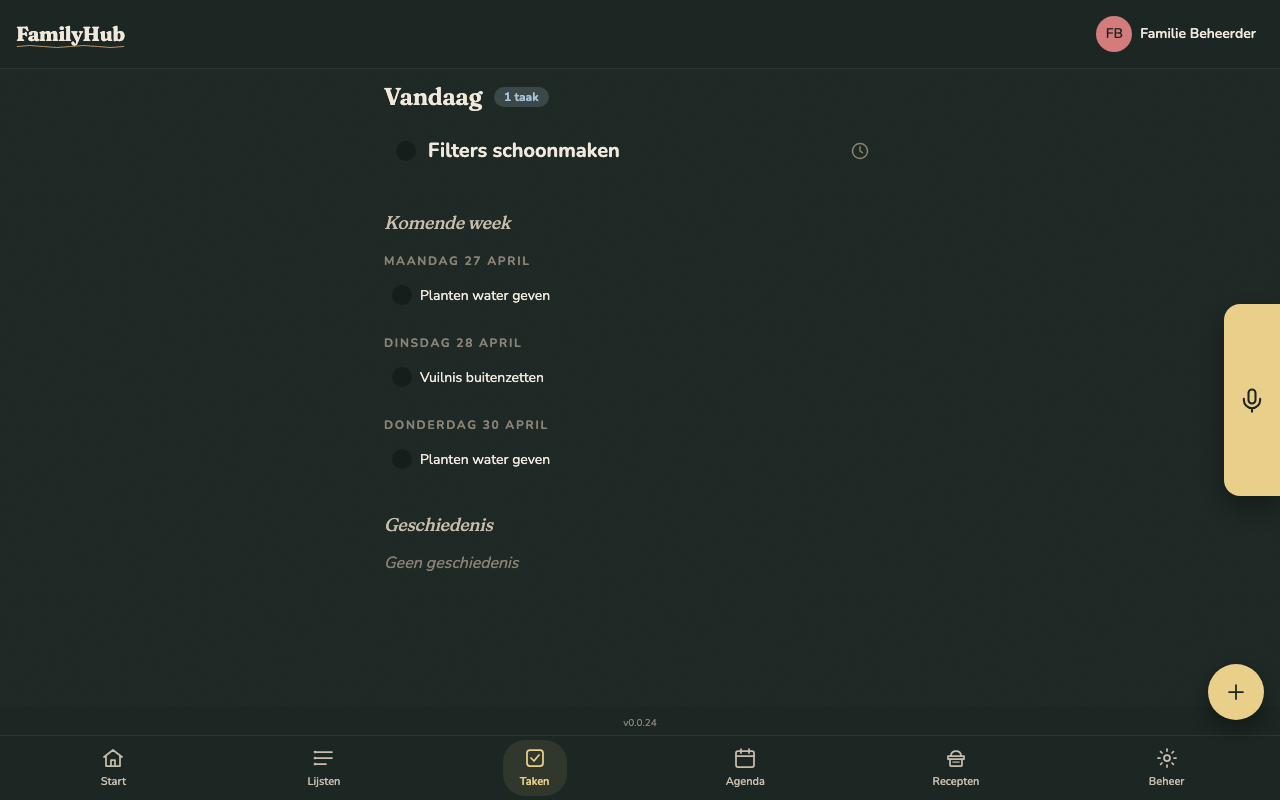 | "planten zijn water gegeven" | Marks the "planten water geven" task as complete for today |